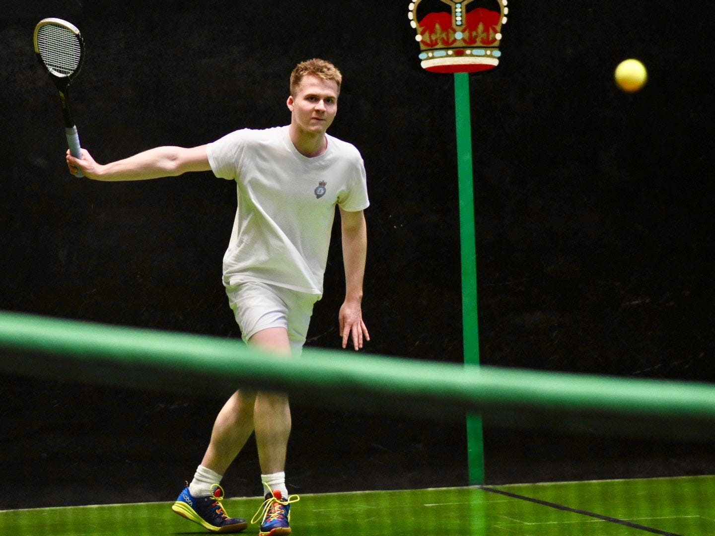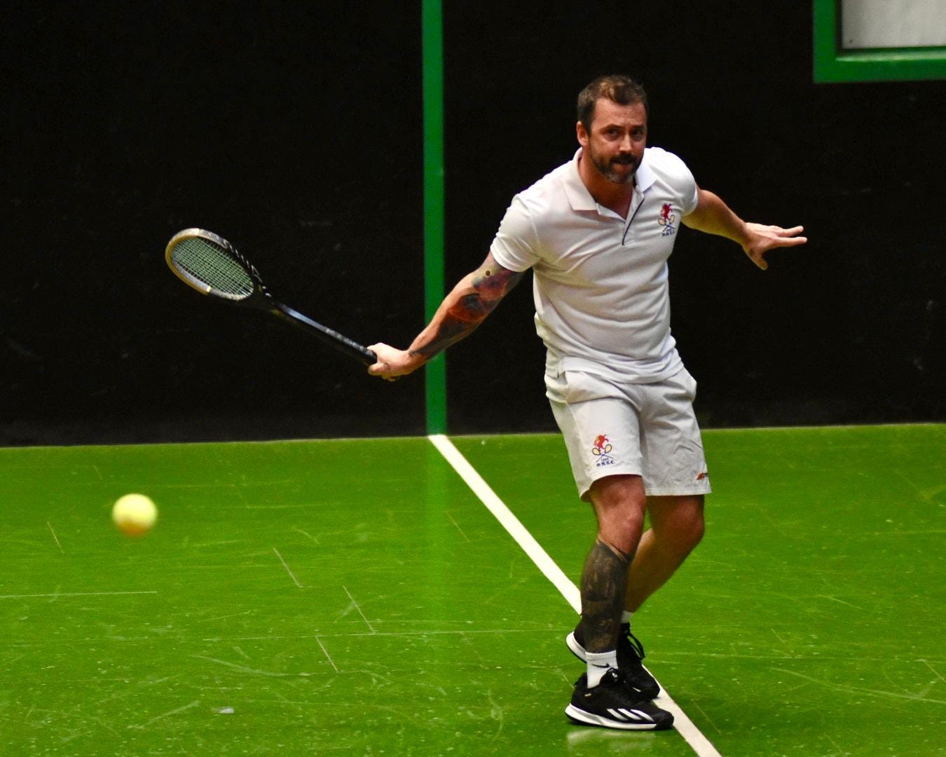 The day moved into the second half of matches with Petworth’s Louis Gordon playing another British Open debutant in the shape of the Royal Tennis Court’s Jack Josephs. Their only previous meeting had been at Josephs’s home court for the Champions Trophy qualifying in a match where Gordon blew Joesphs off court with his forcing. Josephs had clearly done his homework, able to survive, at least initially, Gordon’s power hitting. But Gordon had plenty of other weapons to deploy, with his volleying and boasting particular highlights, cemented by some solid work on his backhand. Try as he might, Joseph’s could not make progress against Gordon’s juggernaut, despite the match proving a valuable milestone in his development as a player. By the end of the match, Gordon had had enough, using his force to shut out the match quickly.