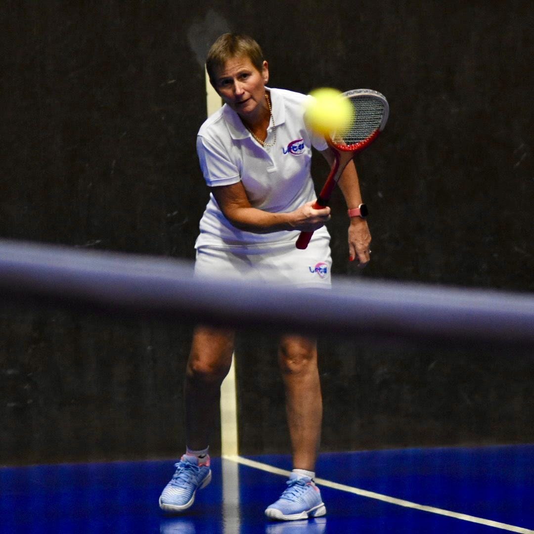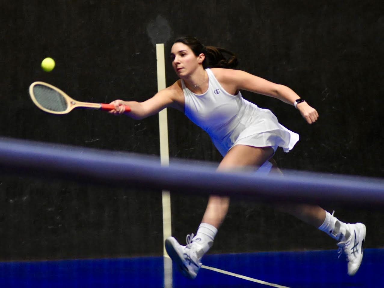 The women’s qualifying kicked off in earnest with a match between Alex Garside and Sabrina Didizian. The experience gap couldn’t have been more stark: Garside was a veteran of the sport, having won the British Open in 1994, while Didizian was playing in her first competitive tournament. Didizian controlled the match from the start, leaping at any forehand volley she could reach and taking time out of her opponent. Garside attempted to counter Didizian’s serving with a series of lob volleys, trying to get short chases over the head of Didizian. But Didizian’s read of the play and control of the ball, keeping it as much as possible below the height of the bandeau, gave her the ability to the find areas of the court where Garside was not. She took the first set largely untroubled, dropping just a single game.