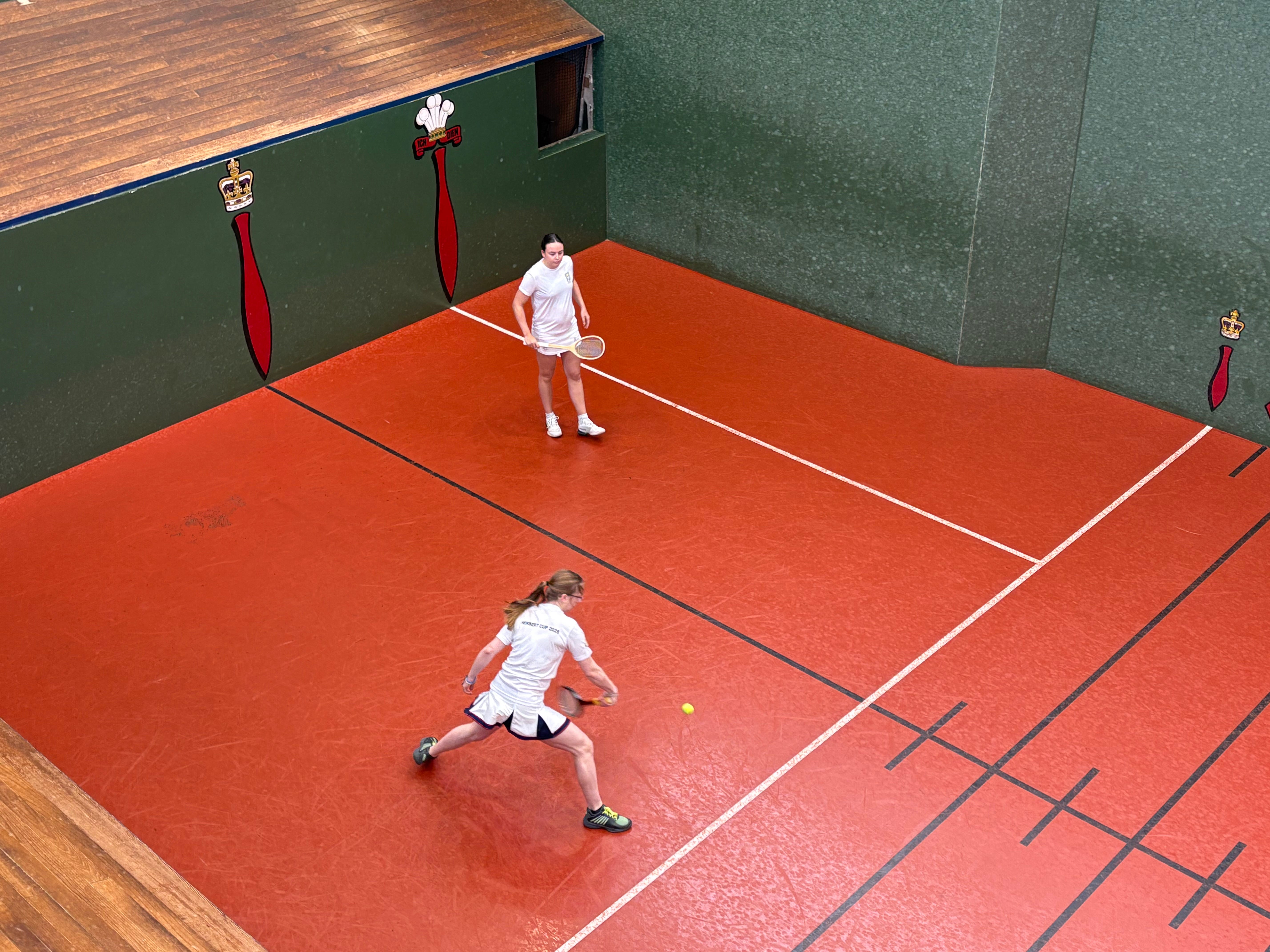 The first of the doubles semi-finals was between the second seeds Lea Van Der Zwalmen and Katherine Carney, and the third seeds Tara Lumley and Xanthe Ranger, the latter playing their first match of the tournament having received a walkover in the first round. Despite missing competitive play together, Lumley and Ranger were on fire, with Lumley covering the court excellently, making no errors and reading the play very well. Lumley and Ranger were able to pick off Carney at the galleries, testing her volley time and time again before she made a mistake. Van Der Zwalmen wasn’t able to impose herself as her style of pushing the ball into the corners was not very helpful if it gave Lumley the option to hit at Carney. Carney’s play wilted under the pressure, while her opposite number Ranger was more relaxed, hitting better shots and happy to leave the difficult balls to Lumley. Carney and Van Der Zwalmen saved three set points when 5/3 down, but after conceding a short chase couldn’t save a fourth.