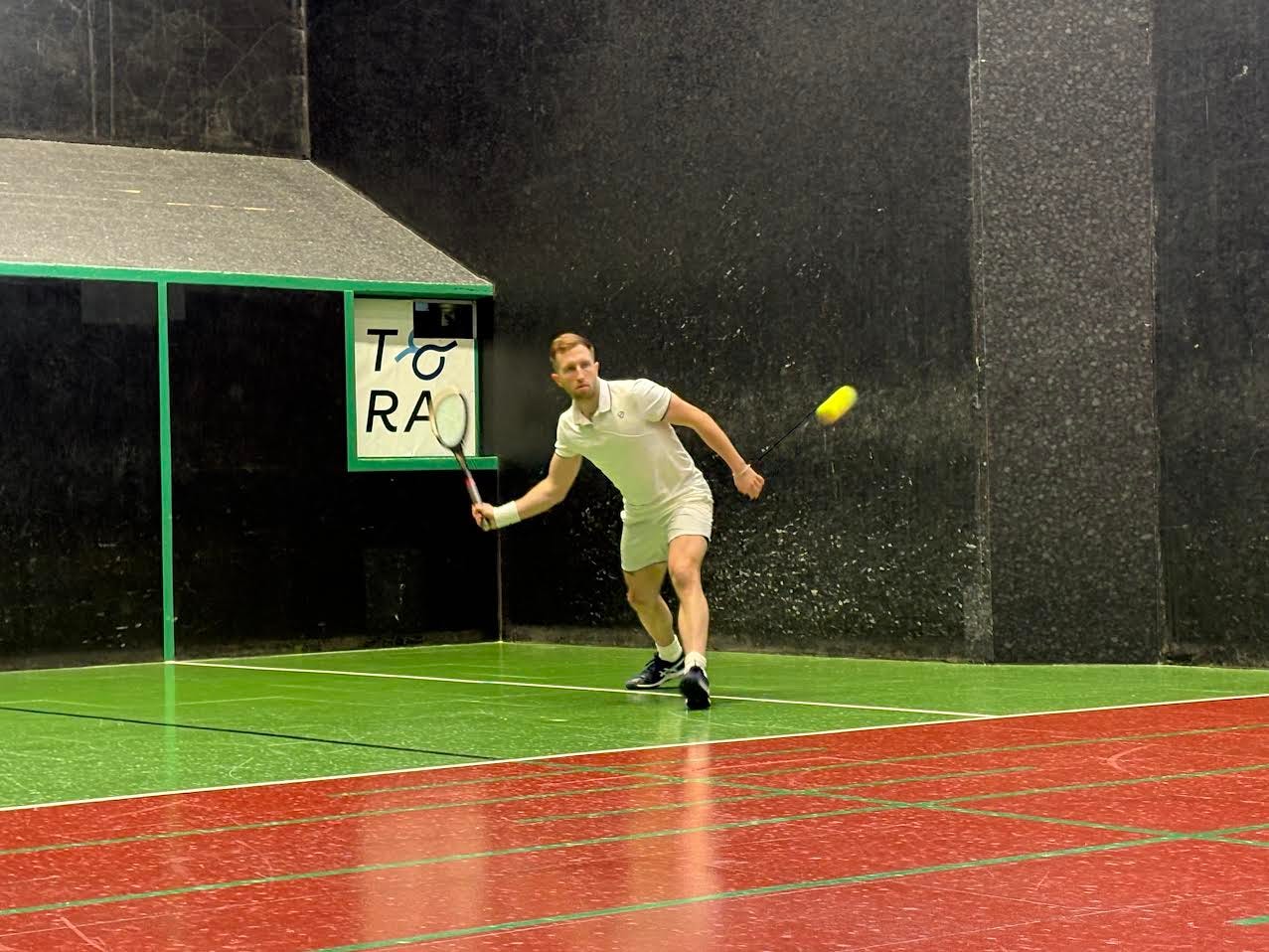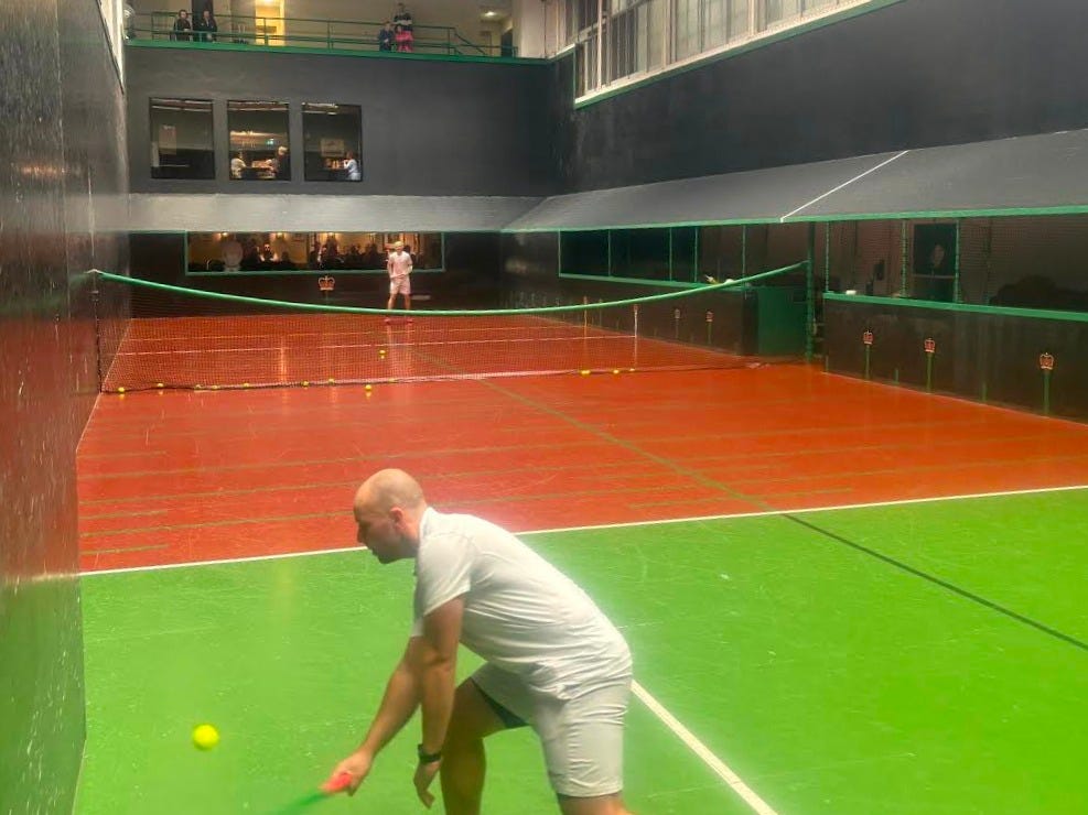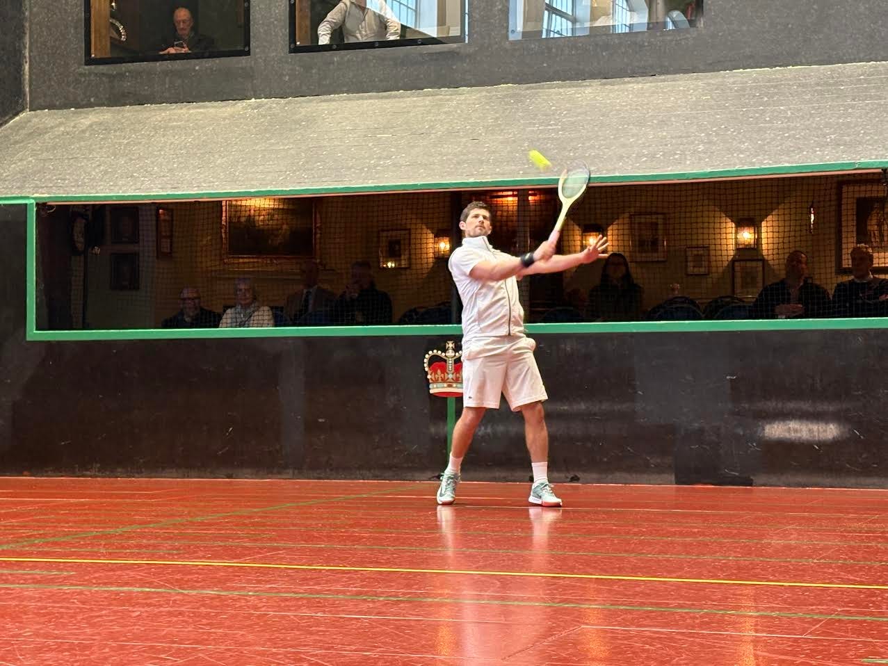 The second round concluded with a match between the first seed in the Open draw John Lumley and the first seed in the women’s draw Claire Fahey. The pair first met on a real tennis court way back in 2002 at the British Junior Under 12’s in a match won by Fahey 3 games to 2. Many things have happened in both player’s career’s since, extending to the top of their respective games. On this particular evening, the packed-out dedans was treated to a world-class display of how to control the ball in the air, with both players pulling off some unbelievable volleys hitting with outstanding reflexes and control. Lumley’s retrieval was on point, barely giving away a point from the service end. The rallies were high quality with very few errors, but Lumley was generally better able to find winners when needed. The scoreline did not reflect the standard of tennis on display, as Lumley secured his place in the quarter finals.