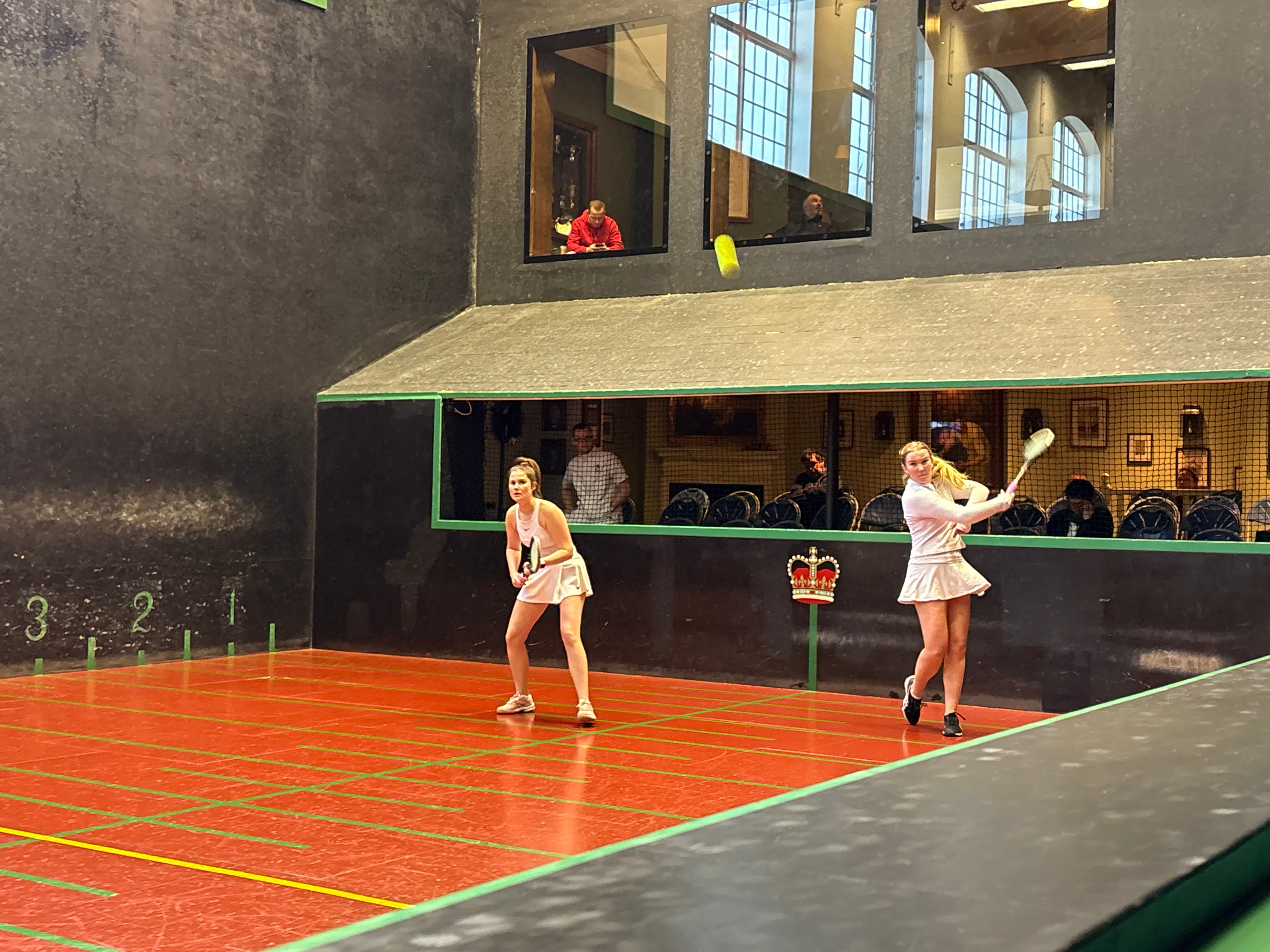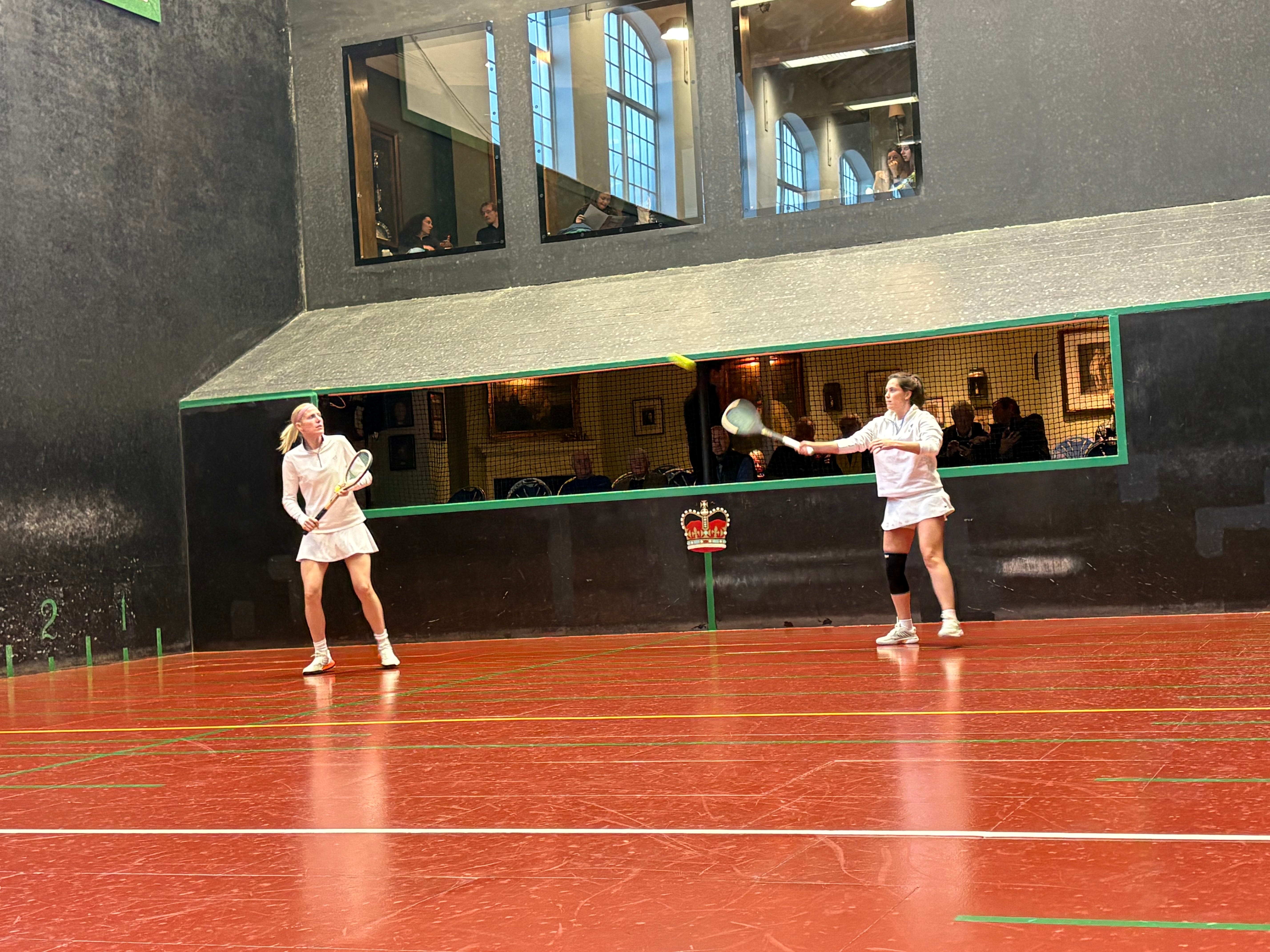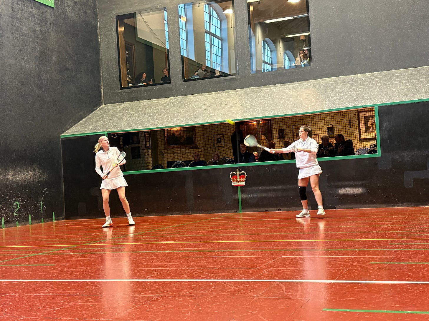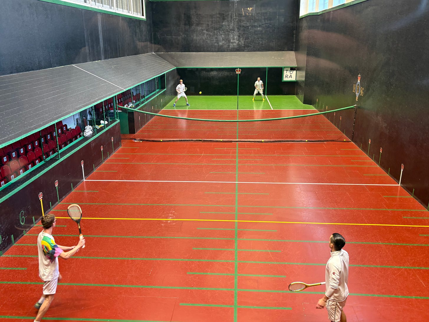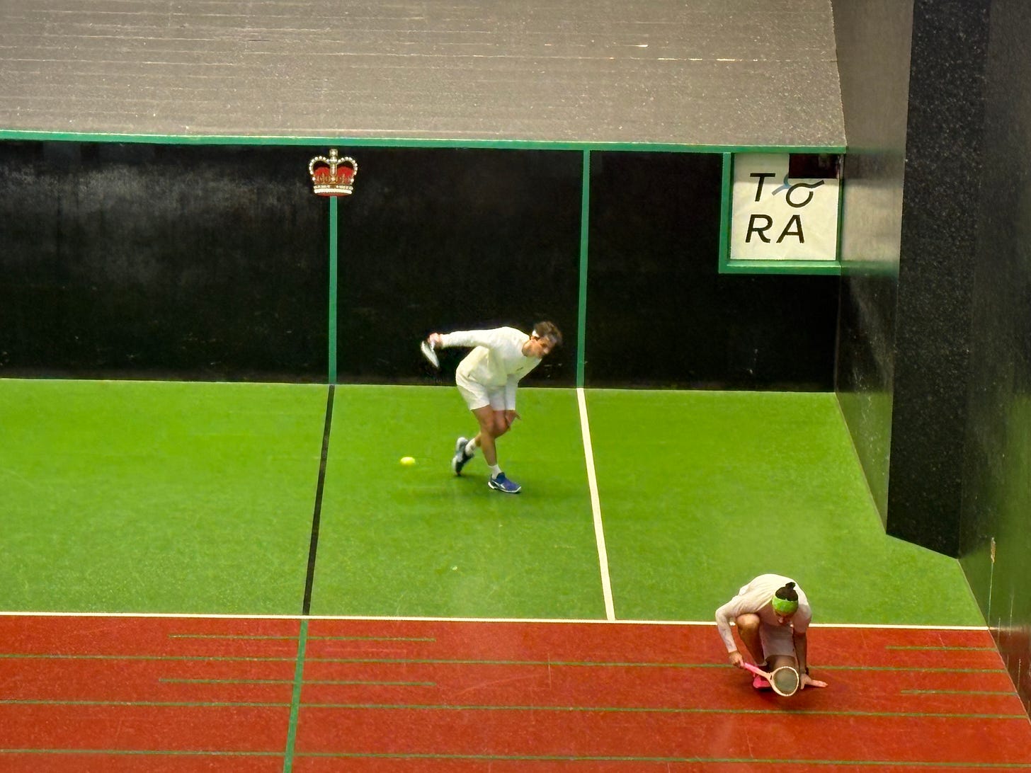 There was a slight confusion at the start of the fourth set as Shenkman was not sure who was set up to receive — given that through the previous set, the receiver had set up on the grille side to receive the pique. After a moment, Woods-Casey nominated to switch back to Smart’s serve, as had been the case through the first two sets. The tennis was the closest of the match, with Woods-Casey and Dodgson having to pare back their extravagant shot-making and instead knuckle down to some hard graft. There was some minor controversy in the fifth game when playing off chase the door, as Smart’s shot hit the door post just as Dodgson’s foot and racket disturbed the net. With fractions of a second in it, the marker called chase-off, despite protestations from Smart. Dodgson and Woods-Casey went on to win the next two games but, in part due to Shenkman’s good high serving, as well as Smart becoming more active on the backhand at the galleries, the number four seeds won the next three games to 5/4. Woods-Casey narrowly missed a winning gallery to send the game into a decider but Dodgson instead rolled in two main wall dedans a few moments later. Shenkman and Smart went 30-0 up on the back of a pair of unforced error, but a dedan boasted off the tambour wall and a couple of volley errors from Shenkman brought up match point with a worse than second gallery chase. Woods-Casey’s railroad was milimeter perfect, with Smart only able to spoon the ball onto the penthouse. Woods-Casey slammed the ball into the tambour, winning the match and immediately embracing his partner. The winners stayed on court after the match to sign autographs for the local schoolchildren who had been watching in the side gallery, before both heading to rebook their flights as they extend their stay in London and with Dodgson donning his tuxedo to head to a wedding.