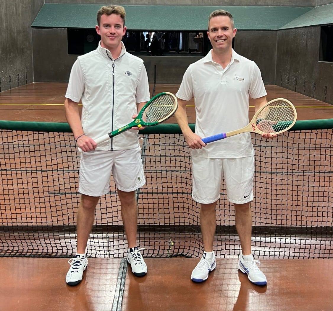 Despite the experience gap, Trueman had the better start to the match as Sayers — as he had done in the semi-final — took some time to fully warm up into the match. Both players were relatively content to play the traditional floor game, trying to catch their opponent out with a difficult ball into the corner. Trueman took the first three games, but once Sayers was fully firing, the bullets that he was sending down shot after shot put Trueman on the back foot. Sayers brought it back to 3-all. Trueman had to knuckle down on his defensive game, returning ball after ball and making very few mistakes. Despite Sayers’s constant press, Trueman held firm as the pair exchanged the next four games, sending the set into a decider. Trueman managed to find a trio of tight balls against the side walls eliciting tough racket errors from Sayers, before sealing the set with a rare main wall dedans.