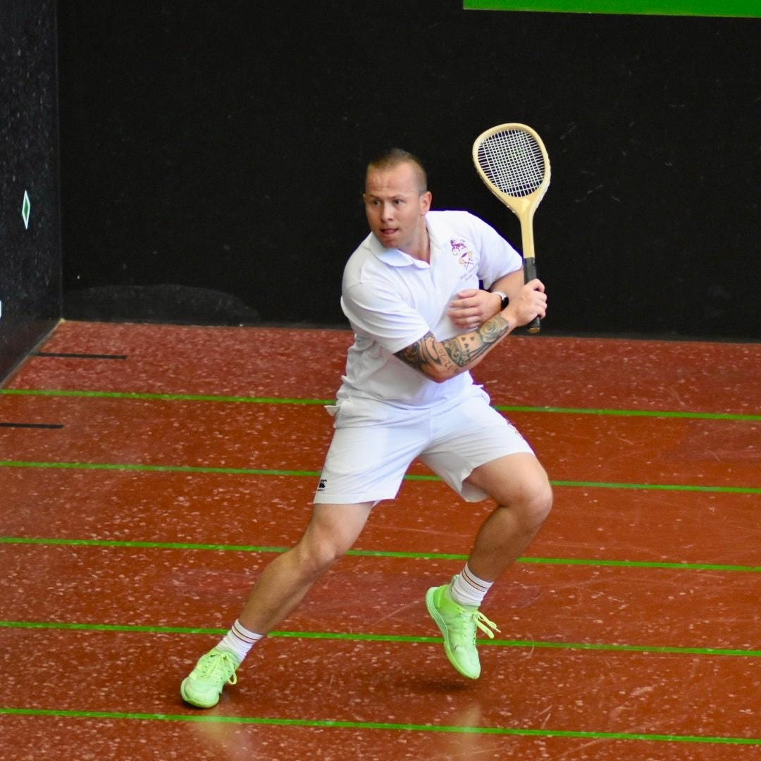 The last match was a straight shootout between Hamilton and Darren Long, with the winner progressing to the main draw. Hamilton was out of the blocks fastest, quickly reaching points for a four game lead before Long could get on the board. He knocked Long off his railroad game plan that he had employed almost exclusively for the past few months. Long leant on his deep experience to battle back into the game, which became an all out slog, winning one game at a time as they edged towards the finish line. Both put away their forcing instead aiming for a deep length into the corners made more difficult by the width of the court. Hamilton was stuck at the hazard end while up 8-7, before finally slotting two galleries to return to the service end at 8-all 30-all. Long beat the first with a perfectly angled thick boast to bring up match point. Then, still with a second gallery chase, Long skied an ill-directed shot off the dedans penthouse, only for the ball to fall directly into the last gallery, winning the chase and the match. Hamilton dropped his racket on the floor in disbelief, while Long looked literally gobsmacked, bringing his hands to his face as his jaw dropped. He sheepishly accepted the applause from the crowd, embarrassed by the shot that brought him a main draw entry.